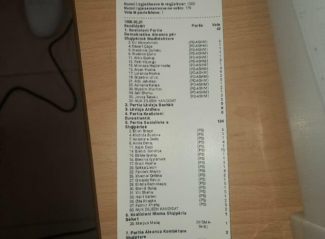 Numërimi elektronik në Vorë tregon se në kutinë e parë të numëruar, rezultati është 124 vota për PS dhe 42 vota për PD.