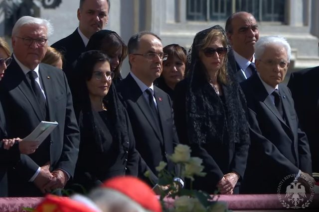 Presidenti Begaj iu bashkua ceremonisë krahas udhëheqësve botërorë së bashku me delegacionin shtetëror që kryeson, të përbërë nga Ministri për Evropën dhe Punët e Jashtme, z. Igli Hasani, Ministrja e Shtetit për Administratën Publike dhe Kundër Korrupsionit, znj. Adea Pirdeni dhe Ambasadorja e Republikës së Shqipërisë në Vatikan, znj. Majlinda Frangaj.