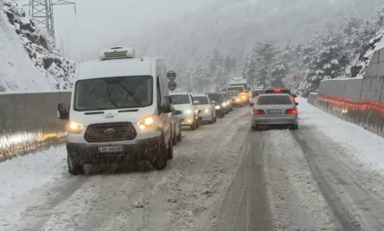 Situata ka qenë problematike si në krahun e Tiranës, ashtu edhe në krahun e Klosit, ku rruga ka qenë e bllokuar për më shumë se një orë.